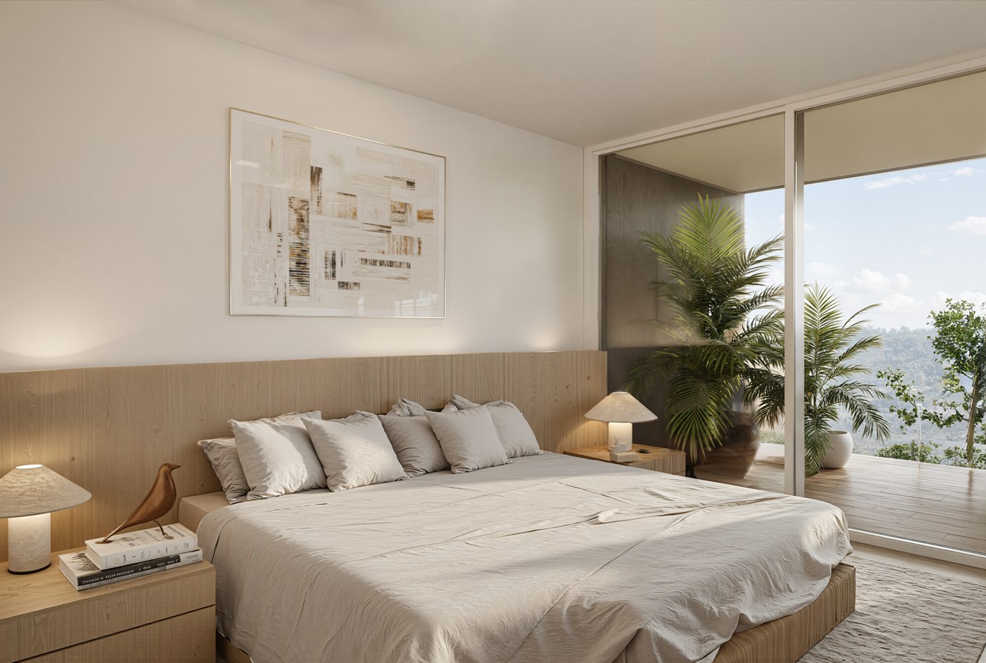 Les espaces intérieurs s’ouvrent sur des terrasses ou des jardins privatifs intimistes, créant une continuité entre intérieur et extérieur.